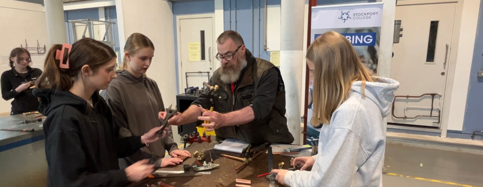 Following the morning session, the students explored Stockport College’s outstanding workshops, taking part in electrical, plumbing, interior design, carpentry & joinery, plastering, bricklaying, and project management activities.